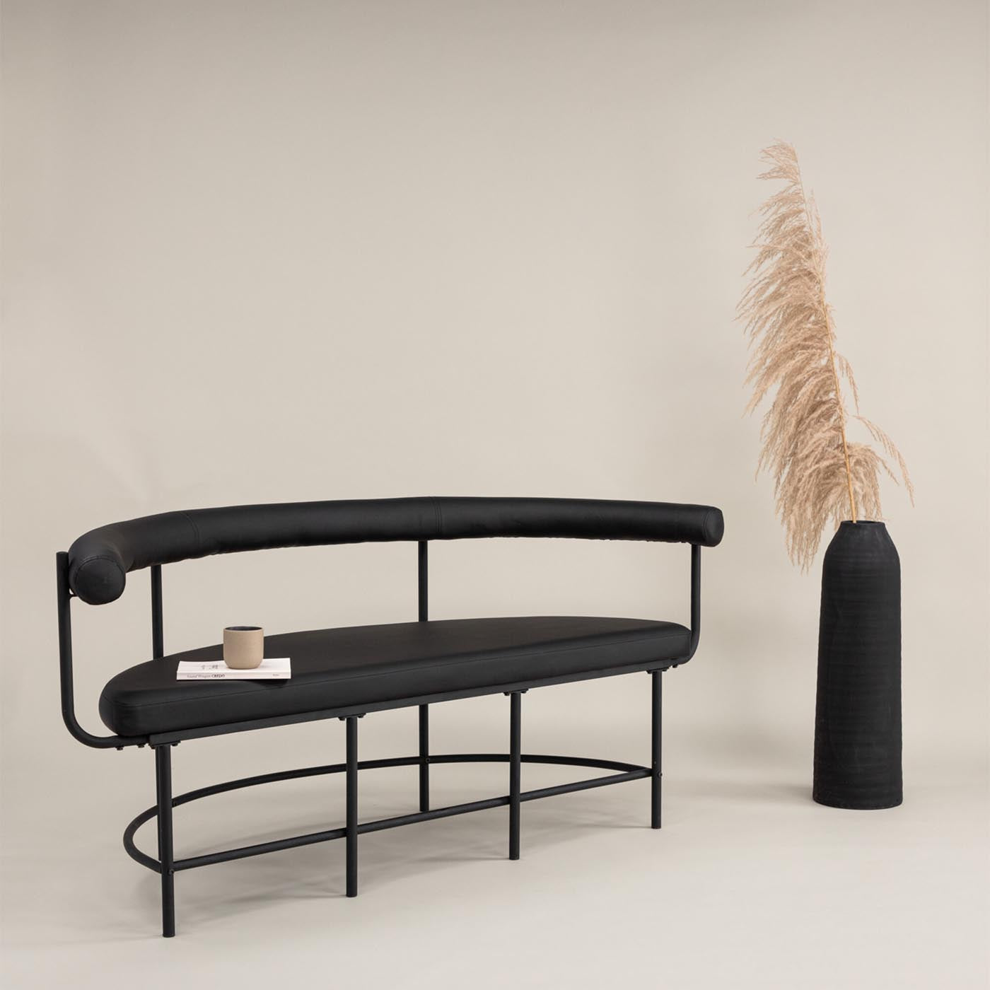 Die Dutchbone Shiho Bank: Schwarzes Holz, weiches Bouclé-Kissen, rutschfest. Perfekt für Flur oder Schlafzimmer. Dutchbone Shiho Bank: Stilvolles Design mit luxuriösem Bouclé-Bezug.