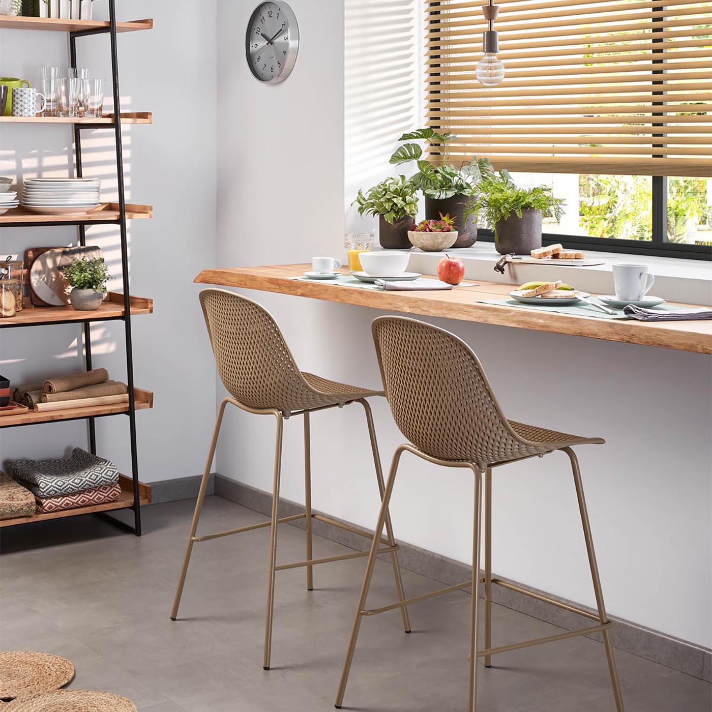 The Quinby Collection by Kave Home combines modern outdoor design with ecological responsibility. The garden chairs and bar stools are made from recycled plastic and impress with their airy hole structure - light, stackable and perfect for the terrace, balcony or hospitality area.