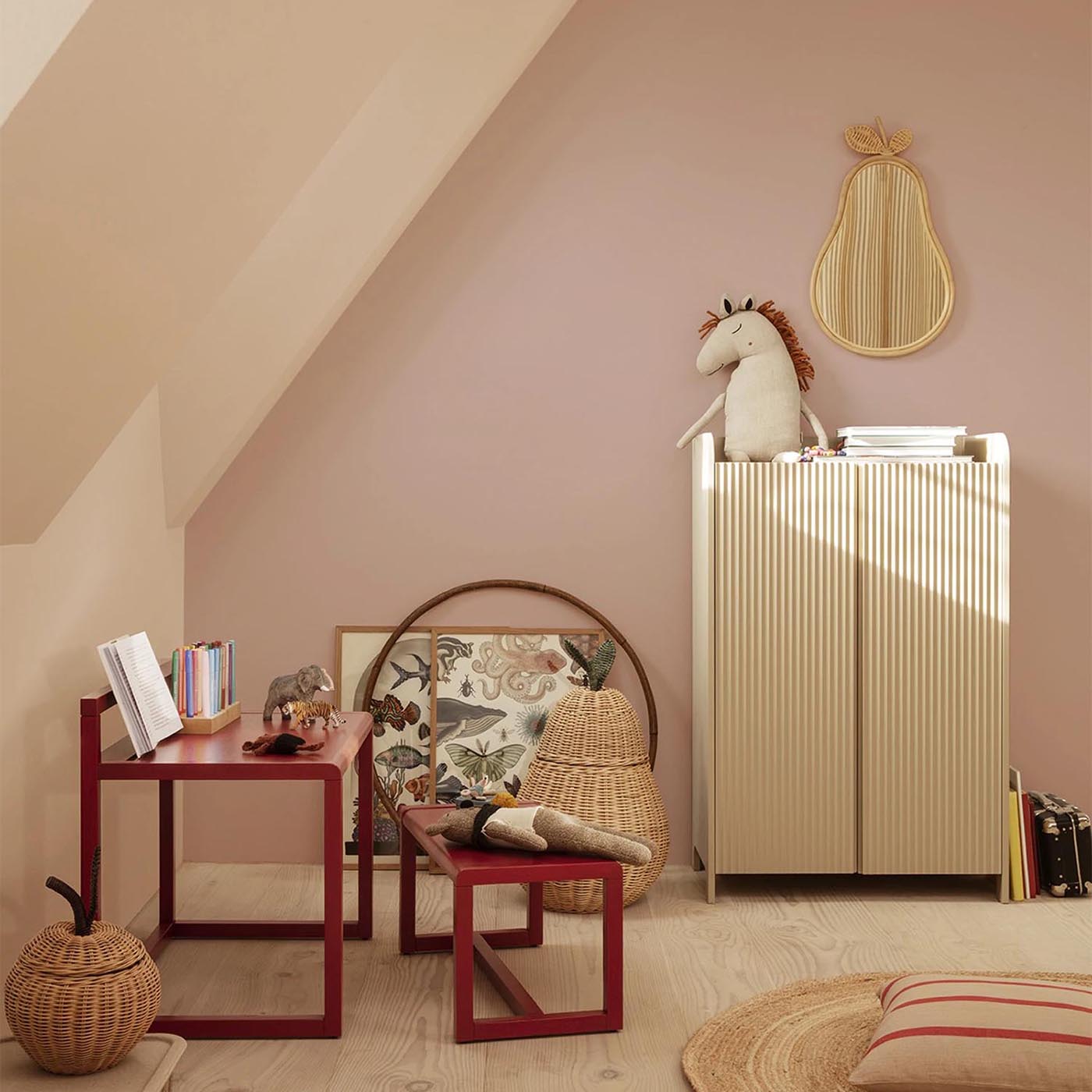 The Sill Series by Ferm Living combines practical storage space with gently curved design. The name "Sill" is derived from the French "Sillon" (furrow) – inspired by the vertically grooved fronts of the furniture.