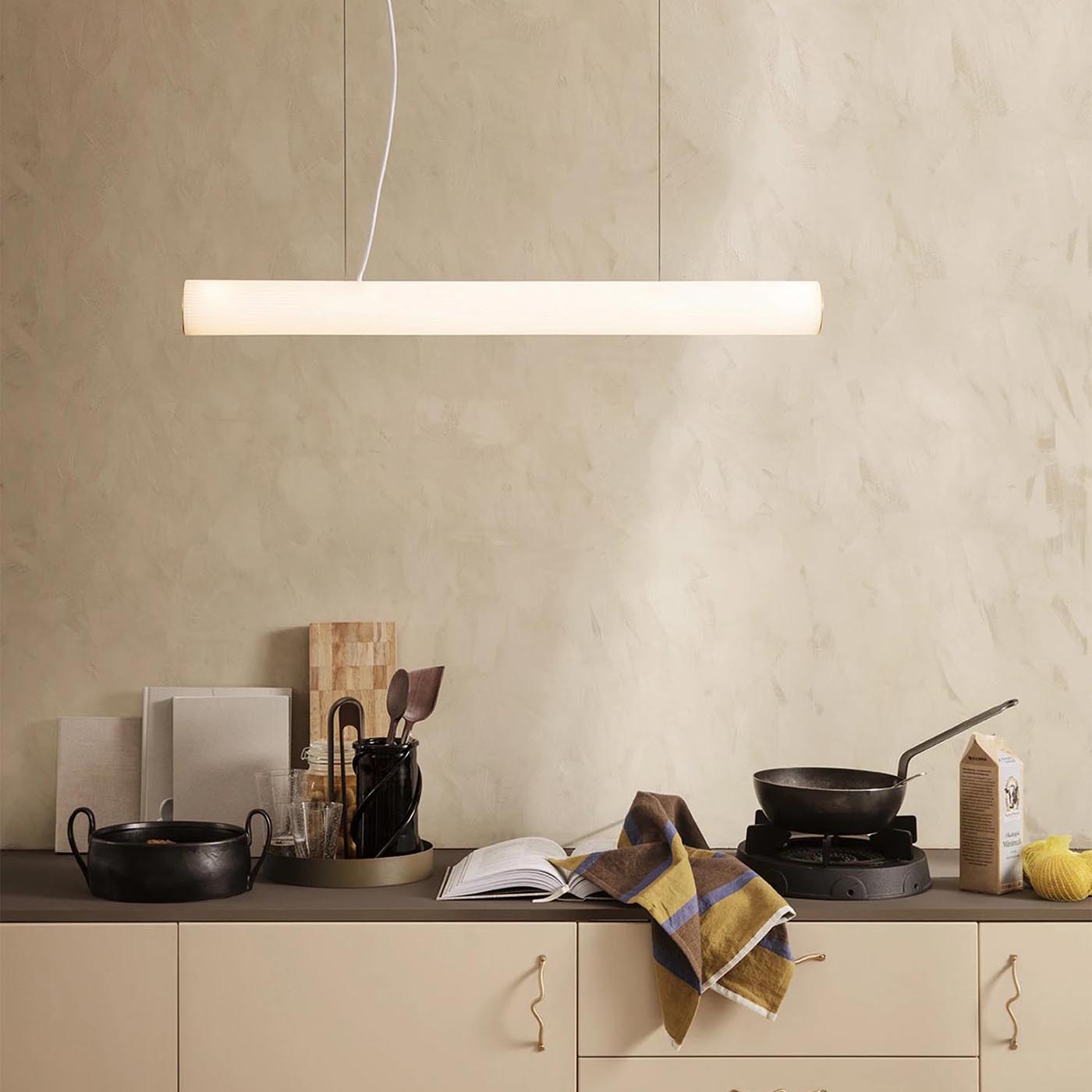 The Vuelta table lamps and Wall lights are made of ribbed, opal glass in a striking arched shape. The integrated LED technology provides warm, even light – perfect for Bedside tables, Coffee tables or shelves.