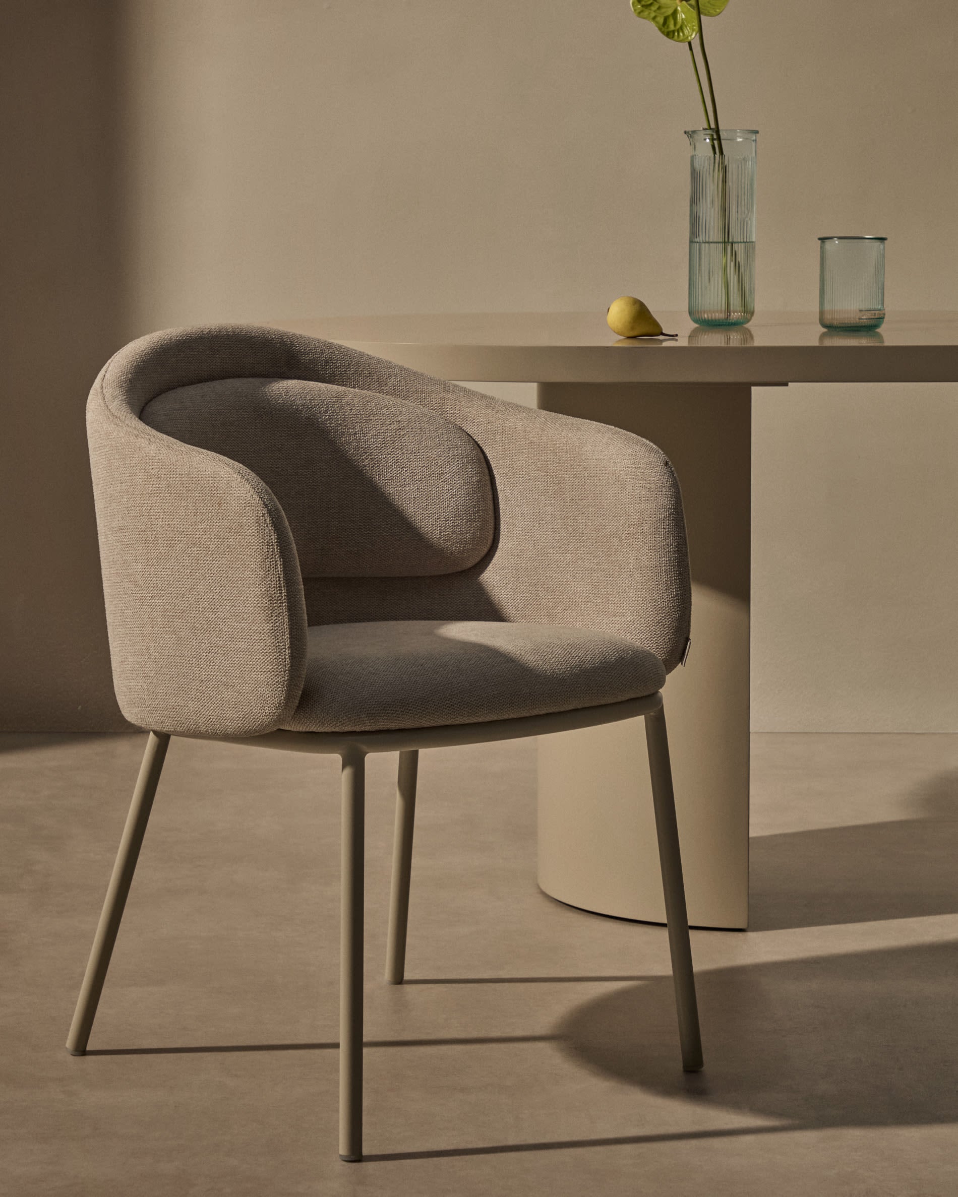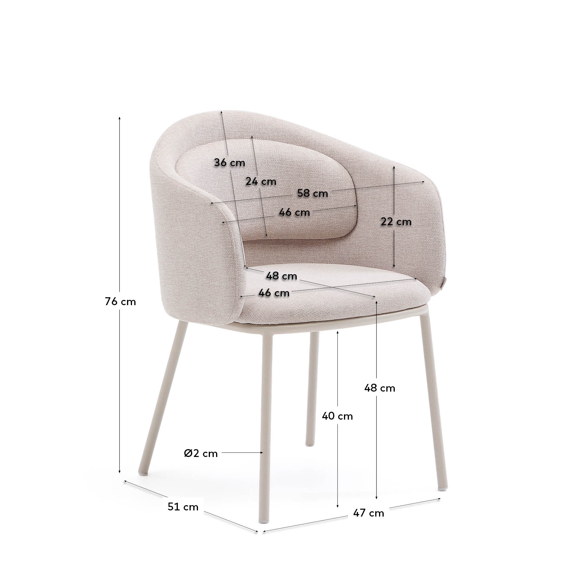 The chair's legs are made of sturdy steel, providing a stable base that makes the chair particularly durable. The steel is painted in a subtle beige, giving the chair a modern touch while maintaining a connection to the classic aesthetic of the 1950s. This combination of fabric and steel gives the Minda chair not only an appealing appearance but also high functionality. You'll find matching accessories in our Dining room collection other furniture that harmonizes perfectly.