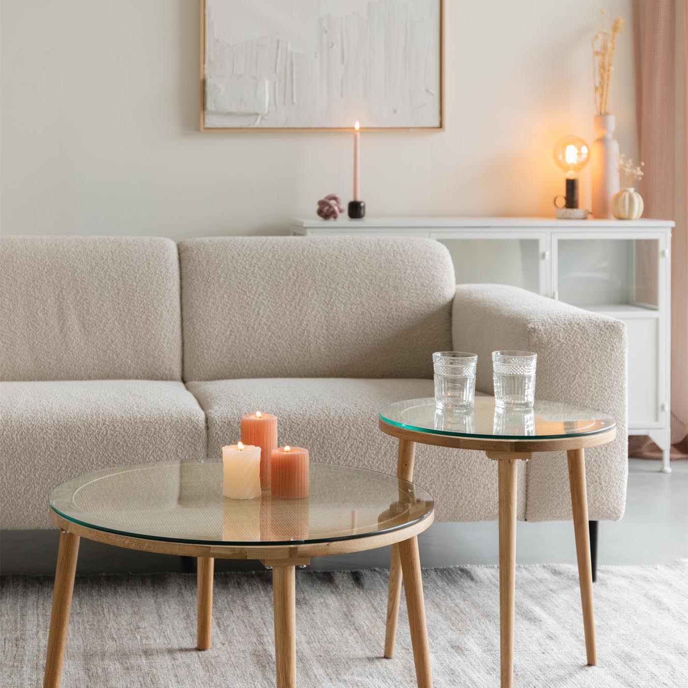 The round shape of the table ensures a harmonious charisma and fits seamlessly into any living area. Combine it with one of our Sofasto create a cozy atmosphere.