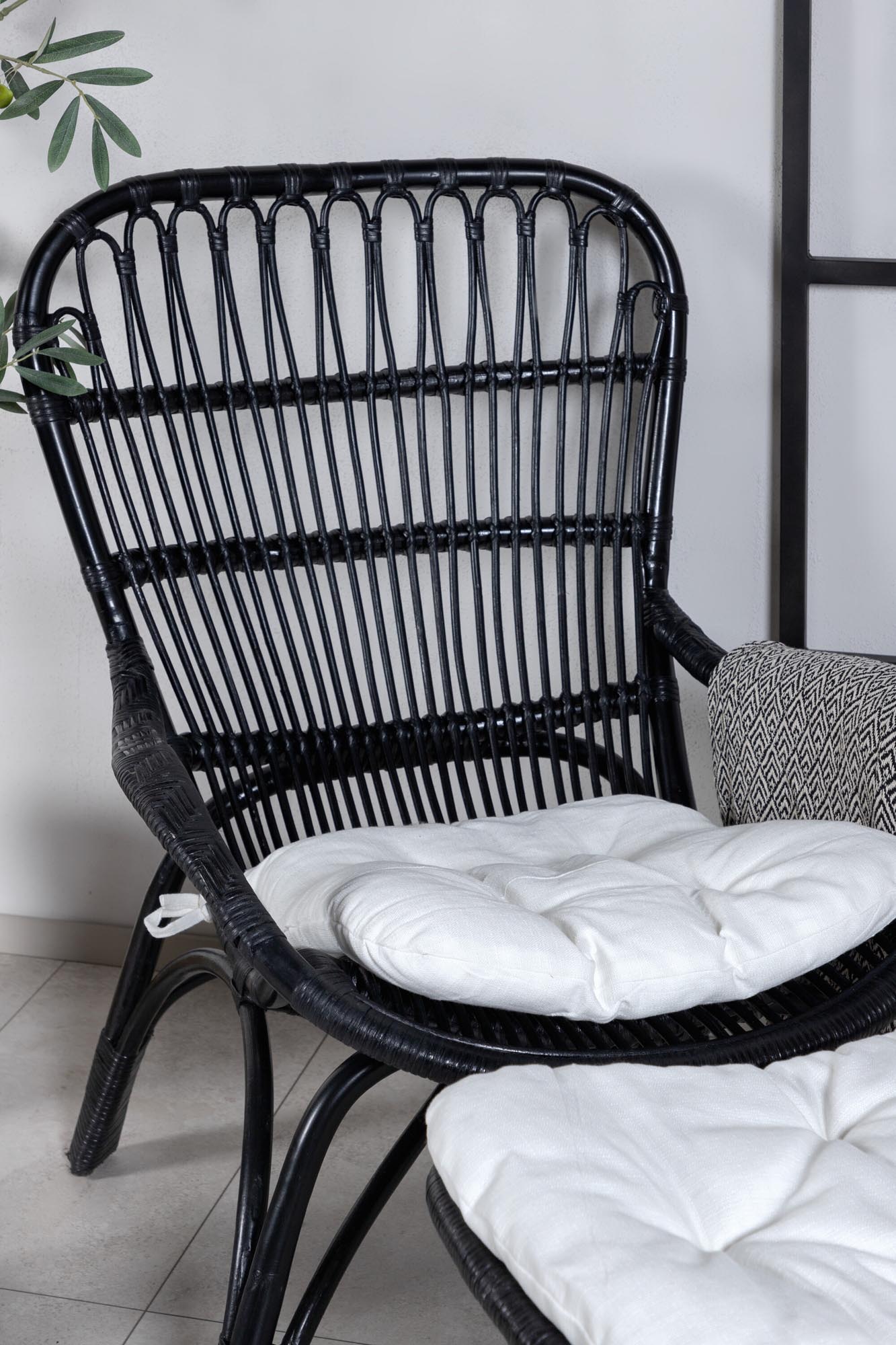 Color Total: Black, Offwhite Color Legs: Black Color Seat: Black Material Fabric Composition %: 100% Polyester Seat Width: 45.0 Material Total Seat: Rattan