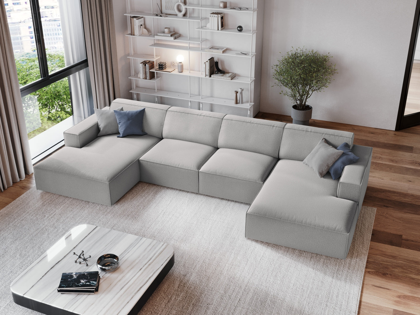 Gestalten Sie Ihr Zuhause neu mit dem Jodie 6-Sitzer Panoramic Sofa von Micadoni – ein modulares, stilvolles Möbelstück für höchsten Komfort.