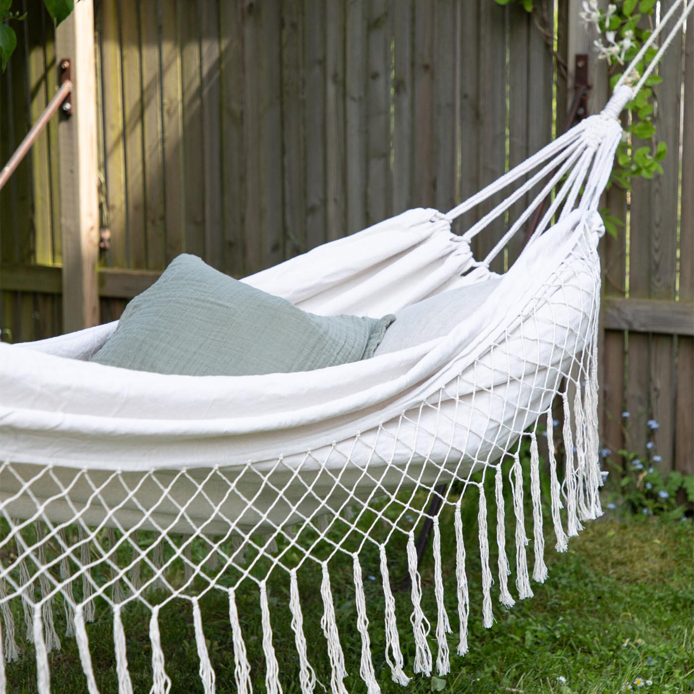 The stable suspension of the hammock ensures Security and stability, so you can sit back and relax without worrying about falling. The included hanging ropes are easy to install and allow for flexible attachment to trees, hammock stands, or other stable structures. Check out our Hammock stands that fit perfectly with your new hammock.