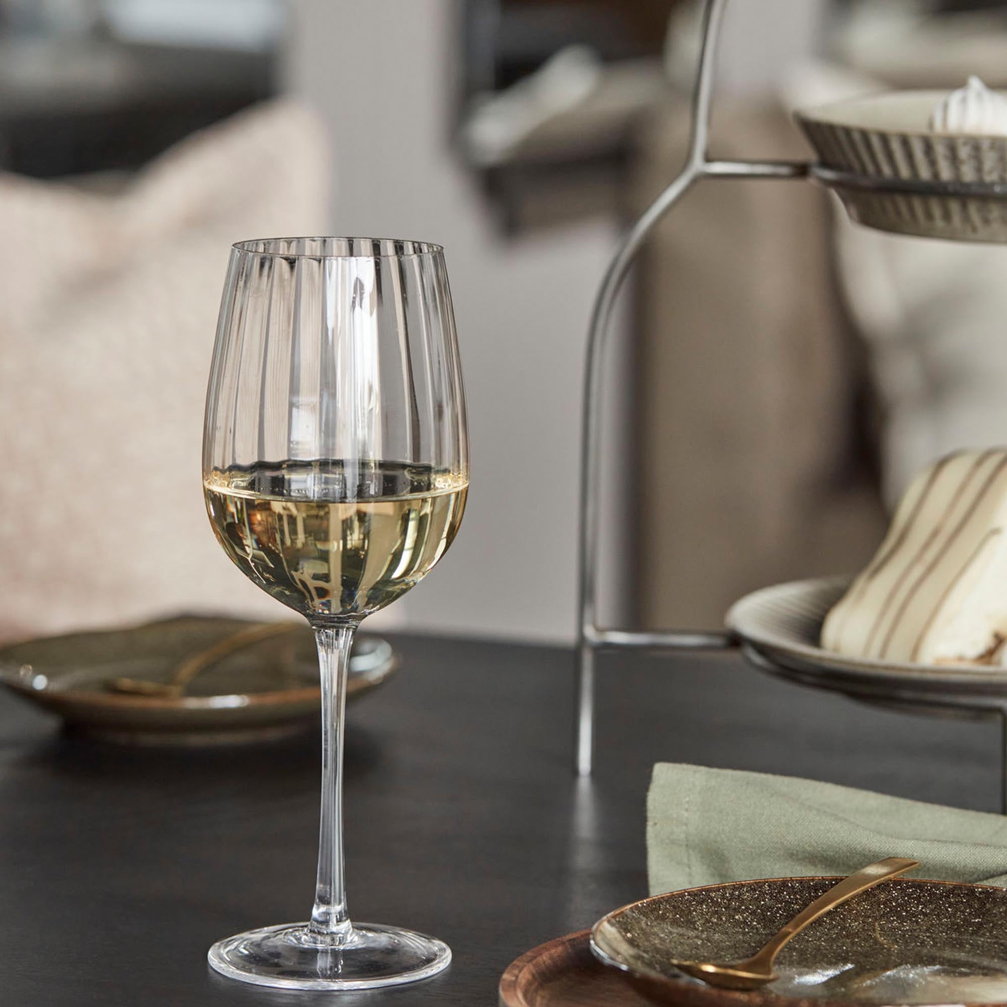 Fatto da vetro trasparente di alta qualità, colpisce per la sua finezza, struttura a costeche non è solo esteticamente gradevole ma offre anche una presa comoda. trasparenza del vetro lascia risaltare i colori delle tue bevande e assicura che siano al centro dell'attenzione. Troverai l'abbinamento Collezione di accessori per la casa ulteriori eleganti aggiunte.