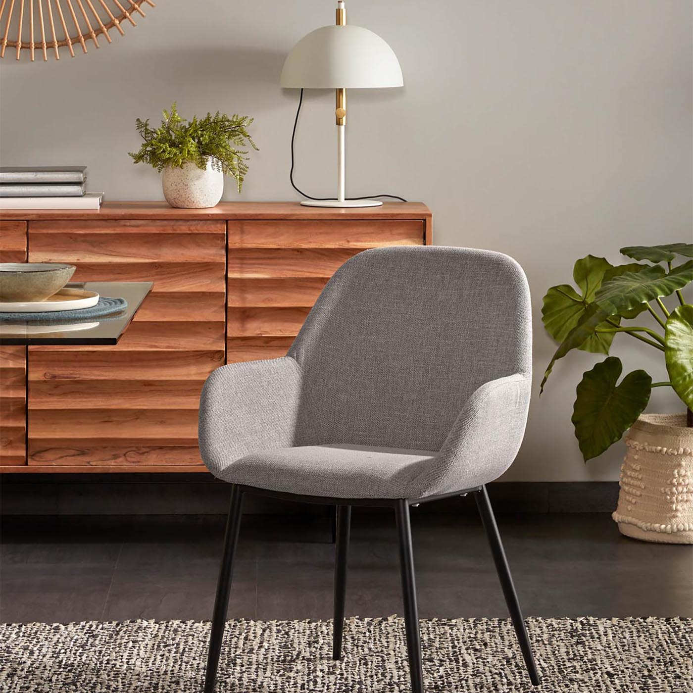 Die Kombination aus 30% Eschenholz, 30% Sperrholz und 30% Stahl sorgt für eine stabile und langlebige Konstruktion, während die Armlehnen zusätzlichen Komfort bieten und das Sitzen über längere Zeit angenehm machen. Passend dazu findest du in unserer Esszimmermöbel-Kollektion weitere Inspirationen für dein Zuhause.