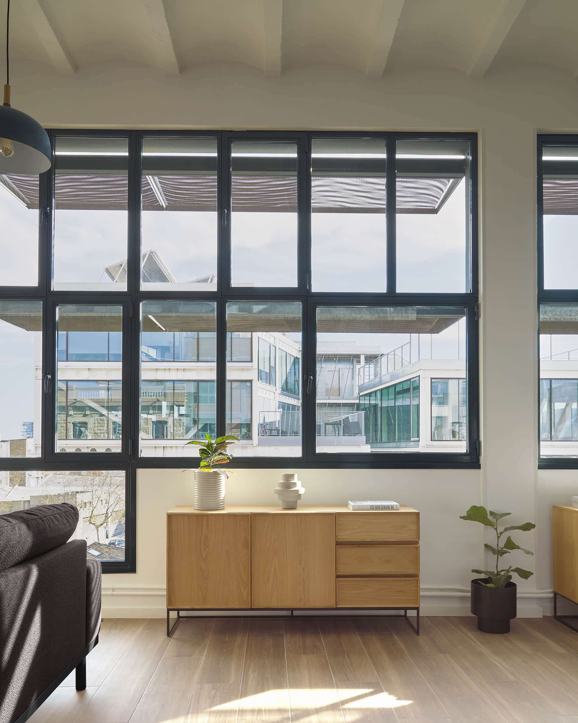 Die schwarze Stahlstruktur, die die Kommode trägt, verleiht dem Möbelstück einen modernen, industriellen Touch, der perfekt mit dem natürlichen Charme des Eichenfurniers harmoniert. Diese Kombination aus Materialien macht die Kommode nicht nur zu einem funktionalen, sondern auch zu einem stilvollen Element in jedem Raum. Die Stahlstruktur hebt die Kommode leicht vom Boden ab, was nicht nur die Reinigung erleichtert, sondern auch für eine optische Leichtigkeit sorgt. Ergänzen Sie den Look mit einem unserer Teppiche für ein harmonisches Gesamtbild.